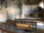 The three stone crosses on the left (north) wall are the most prominent features of the church.